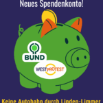 Aus organisatorischen Gründen haben wir ein neues Spendenkonto bei der BUND Kreisgruppe Hannover. Selbstverständlich stellt der BUND eine Spendenquittung aus, die steuerlich abgesetzt werden kann. Vielen Dank im Voraus! Um den Ausbau des Westschnellwegs zu verhindern, wird ein jahrelanges Engagement mit Rechtsberatung und Gutachten notwendig sein. Dies wird leider sehr teuer. Deshalb benötigen wir dringend… Neues Spendenkonto beim BUND weiterlesen - Hol dir deinen 2026 WESTprotest-Kalender